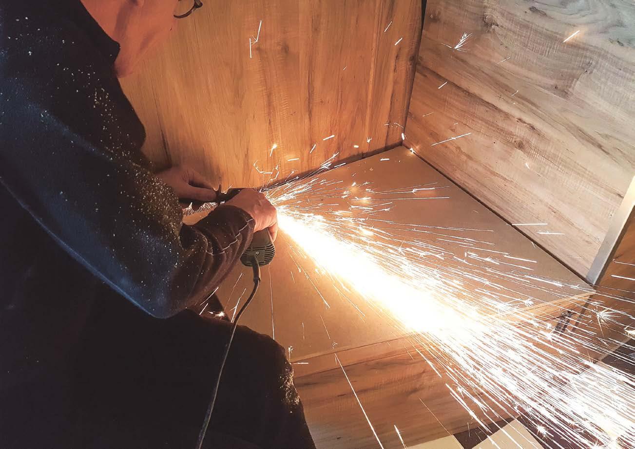 Nahoře: Při přestavbě létají jiskry – tady zrovna Luiův otec odřezává šroub