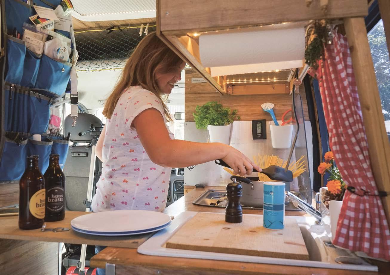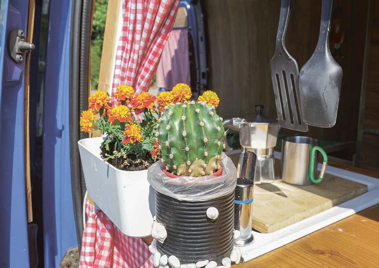 Ve většině karavanů je nedostatek místa, proto pomůžou chytré nápady, které vygenerují více užitečného úložného prostoru . Přímo na dveře skříněk je možné našroubovat držák na hliníkovou fólii a jiné kuchyňské role . Nebo využít gumičky k upevnění různých předmětů, například talířů do svislé polohy . Také profesionální výrobci sázejí převážně na kreativní řešení . Co byste řekli na magnetické sklenice, které lze přichytit na strop, dnem vzhůru? My toužíme mít v karavanu čerstvé bylinky . Jsou výborné nejen do různých jídel, ale také pozitivně ovlivňují vůni v interiéru a už jen svou přítomností vyvolávají domáckou atmosféru .