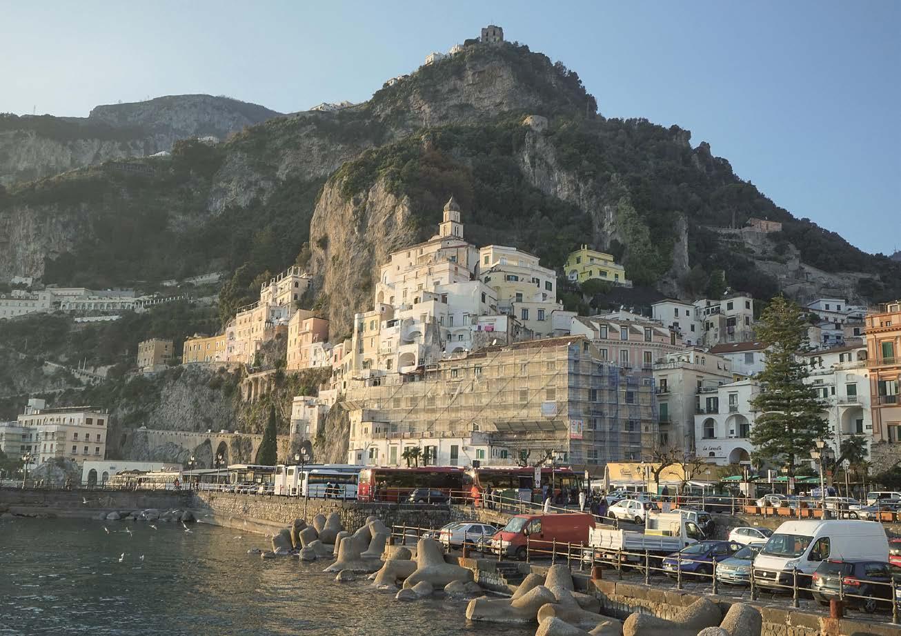 Posledním cílem naší cesty po Itálii je pobřeží Amalfi . Dojet sem není úplně snadné, k místům vzdáleným jen pár stovek metrů vzdušnou čarou jede karavan několik kilometrů a překoná přitom stovky výškových metrů .