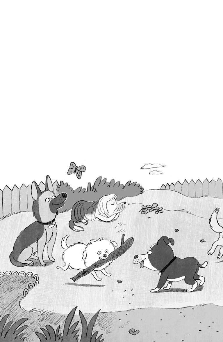 „List! List! Koukejte na ten list! Heleďte! List!“ volal na Lulu a Huga a vrtěl při tom divoce ocasem. Věděl, že lidé na psím hřišti slyší jen vzrušené štěkání a ňafání, ale jeho kamarádi mu rozuměli.