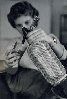 Sifonová láhev výrobního družstva Kovočas v Děčíně, 60. léta 20. století.