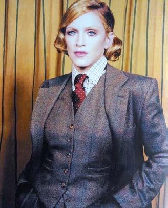 Chameleonka Madonna v kostýmu v pánském stylu podle Marlene Dietrich. Zhotoven byl tradičně v londýnské ulici Savile Row.