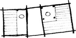Začneme starými Slovany.»TAB—C1.01,1.02 Zpočátku bydleli v chatách zahloubených do země. Konstrukci střechy nesly kůly zapuštěné do země, stěny bývaly z tyčoviny vyplétané proutím a omítnuté hliněnou mazaninou. Pro vaření a vytápění sloužilo otevřené ohniště, vyskytuje se i hliněná pec. Domy měly prastarou konstrukci, kterou popisuje už Vitruvius:[298] „Zpočátku vztyčovali rozsochy, vkládali mezi ně proutí a obkládali stěny blátem — až do dnešního dne tak staví např. v Galii, Hispánii, Lusitánii a v Aquitánii, a pokrývají je dubovými šindeli nebo došky.“