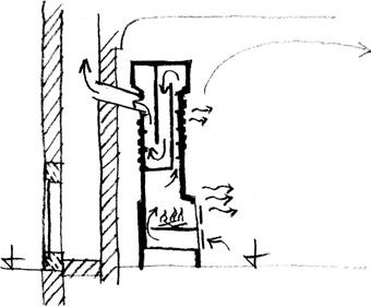 Prokop: Je vidět, že ten, kdo tvrdí, že v té mezeře proudí vzduch, nikdy nezatápěl v kamnech! Komín má průřez 15 × 15 cm. A aby kamna táhla, musí se zahřát celý sloupec vzduchu v komíně. A to dá někdy dost práce. I když máte PE-PO!