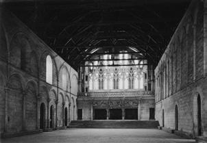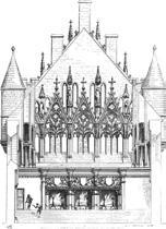 1.12 Obrovský krb se třemi komíny vytápěl celý radniční sál; Justiční palác, Poitiers, 11., 12. a 15 století [296 Viollet le Duc]