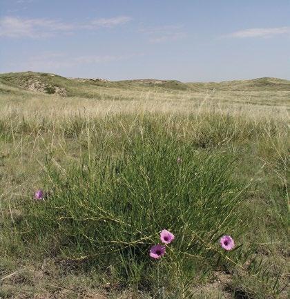 Povijnice (Ipomoea leptophylla) na krátkostébelné prérii nedaleko amerického Denveru. Jde o rostlinu perspektivní i pro zahrady ve střední Evropě.