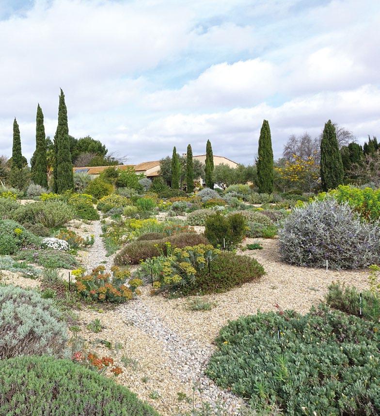 Experimentální suchá zahrada Oliviera Filippiho ve Francii, kde jsou vybírány a hodnoceny rostliny potenciálně vhodné pro výsadby bez nutnosti závlahy.