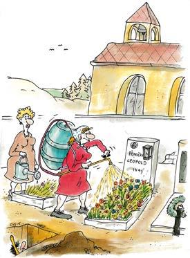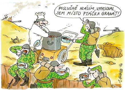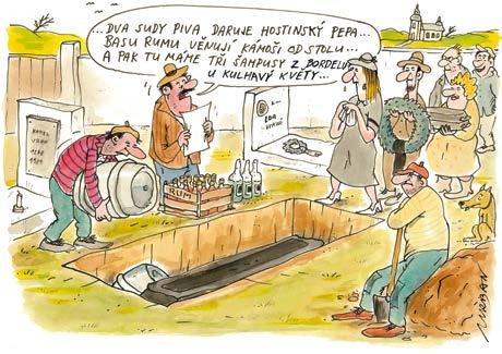 I když není jednoduché uživit se kresleným humorem, protože nikdy nevím, co bude zítra, jestli někdo zavolá a objedná si třeba kalendář, reklamní kampaň, novoročenku, obrázek k narozeninám nebo si koupí obraz a jestli já představu objednatele zvládnu, každý úkol je pro mě meta, které chci dosáhnout a být v ní nejlepší, to se ani léty nemění. Kdybych se nemusel starat, jak zaplatím všechny závazky, to bych se pak věnoval jen malbě olejů. To by mě bavilo. Být v nich nejlepší na světě, tak to už asi nezvládnu, ale těší mě, že už mám několik věrných kupců a že je zájem o mou křížovou cestu, s níž jsem byl pozván i na velké církevní slavnosti do Stuttgartu a možná se stane turistickou procházkou u nás ve Smržovce. Mohl bych říci, že jsem šťastný člověk, ale moje nátura, která mě žene pořád dál, mi to nedovolí vyslovit, nikdy jsem se neuměl nahlas radovat, protože vím, že musím na sobě pracovat a být čím dál lepší. Manželce často lidé říkají, jaká se mnou musí být doma legrace, ale humor je dřina. Doma moc nemluvím a jsem sám se sebou. Zaplaťpánbůh nápadů mám pořád hodně, a nechci to zakřiknout, ale musíte mít vnitřní kázeň a také „sitzfleisch“ a každý den odmalovat kilometry čar a vybarvit x papírů. Můžu jen litovat, že jsem nebyl vsazen třeba do tenisové rodiny, mohli jsme být nejlepší na světě a malovat si jen pro radost. Takhle chytla můj bacil i dcera Markéta, která se živí fotografováním a kreslením a ví, co to všechno obnáší. Když byly naše děti malé, taky si vlastně myslely, že táta je pořád doma a může si malovat, až teď zažívají, jak je to složité. Ale to si nestěžuju, chci vlastně jen poděkovat za to, že jsem dostal úlohu na tomto světě bavit lidi a jsem rád, že se mi to, i díky zázemí, které mám, snad daří.