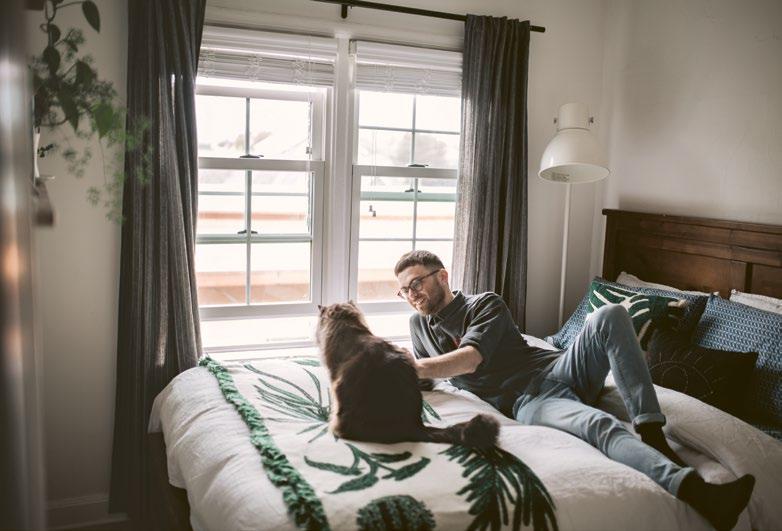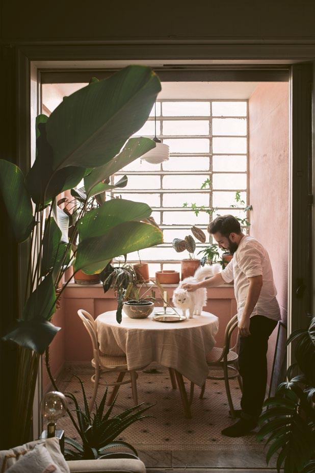 vpravo: Pokud je váš domácí mazlíček akrobat, umístěte rostliny vysoko nad místa, kam může skákat nebo šplhat (stejně jako to udělal Andy pro svou kočku Cavanaugh)