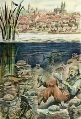 Vodník pan Jindřich na Františku (Zdroj: František Langer, Pražské legendy, ilustrace Cyril Bouda, str. 33)