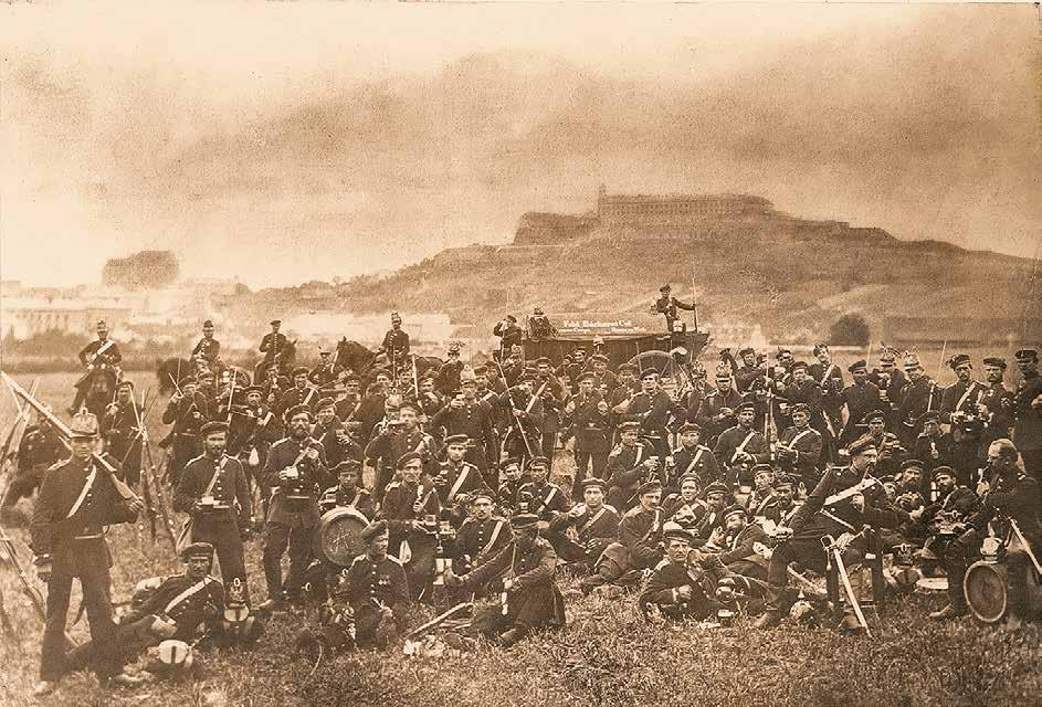 Antonín Mayssl zachytil pruské vojáky po obsazení Brna na náročném skupinovém snímku s několika desítkami mužů a koní na pozadí Špilberku.