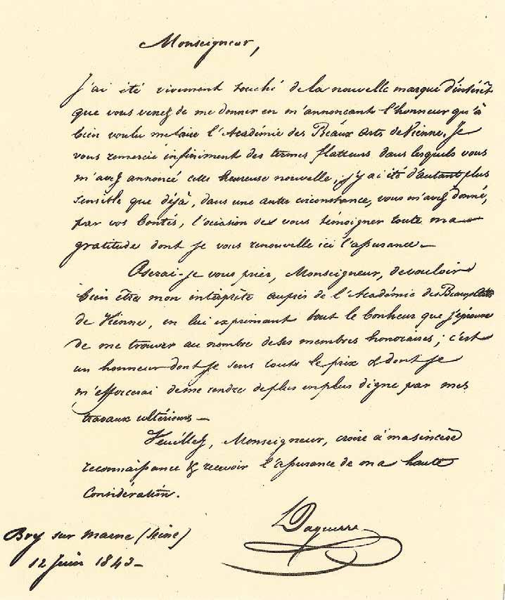 Louis-Jacques-Mandé Daguerra rakouskému kancléři Metternichovi z roku 1839. Faksimile dopisu sběratel a historik fotografie Rudolf Skopec posílal jako novoroční pozornost, kolem 1964