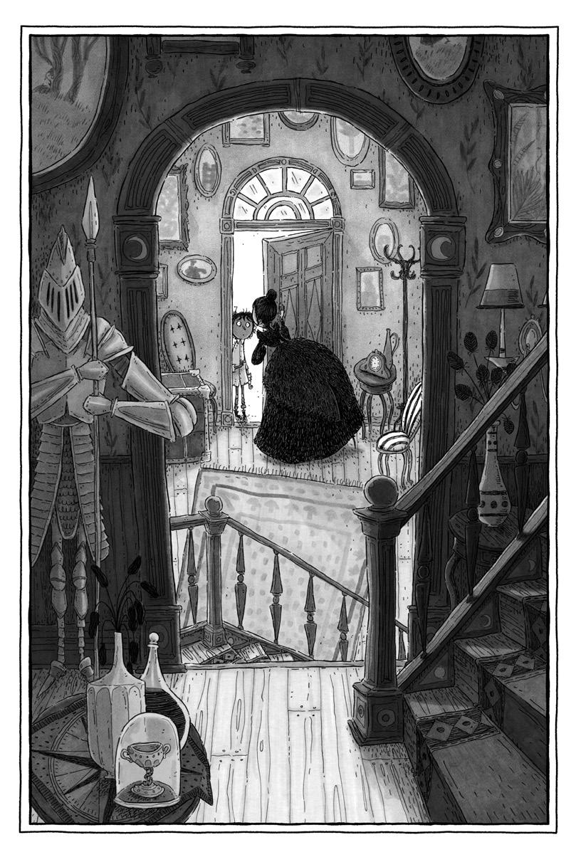 Chlapec si kapesník vzal a utřel žlutého holuba o vyšívaný lem� Poté napřáhl ruku – stejnou, kterou se před chvílí dloubal v nose – a pronesl: „Dobrý den, slečno domácí� Něco jsem ztratil a domnívám se, že bych to měl hledat tady�“