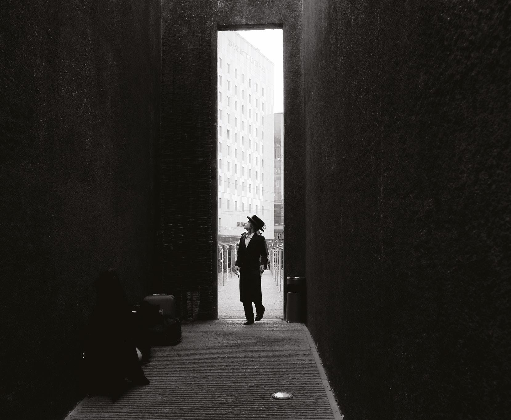 linked by the place where they are. This is the only thing, however, because they are actually not in the same place. After all, it does not even differ from places such as New York or Jerusalem, where these Hasids have flown in from to celebrate the yahrzeit of their saint. People also pass by one another there, with their closed off worlds passing one another by, as the secular world with all of its advertisements and lures for the senses is even more closed off than the world of devout Jews. They live alongside one another like antelopes and wildebeests on the savanna in Africa, as they do not have a reason to take the presence of the other to heart.