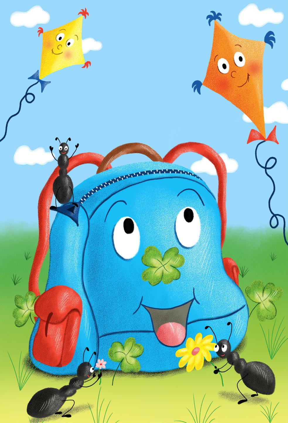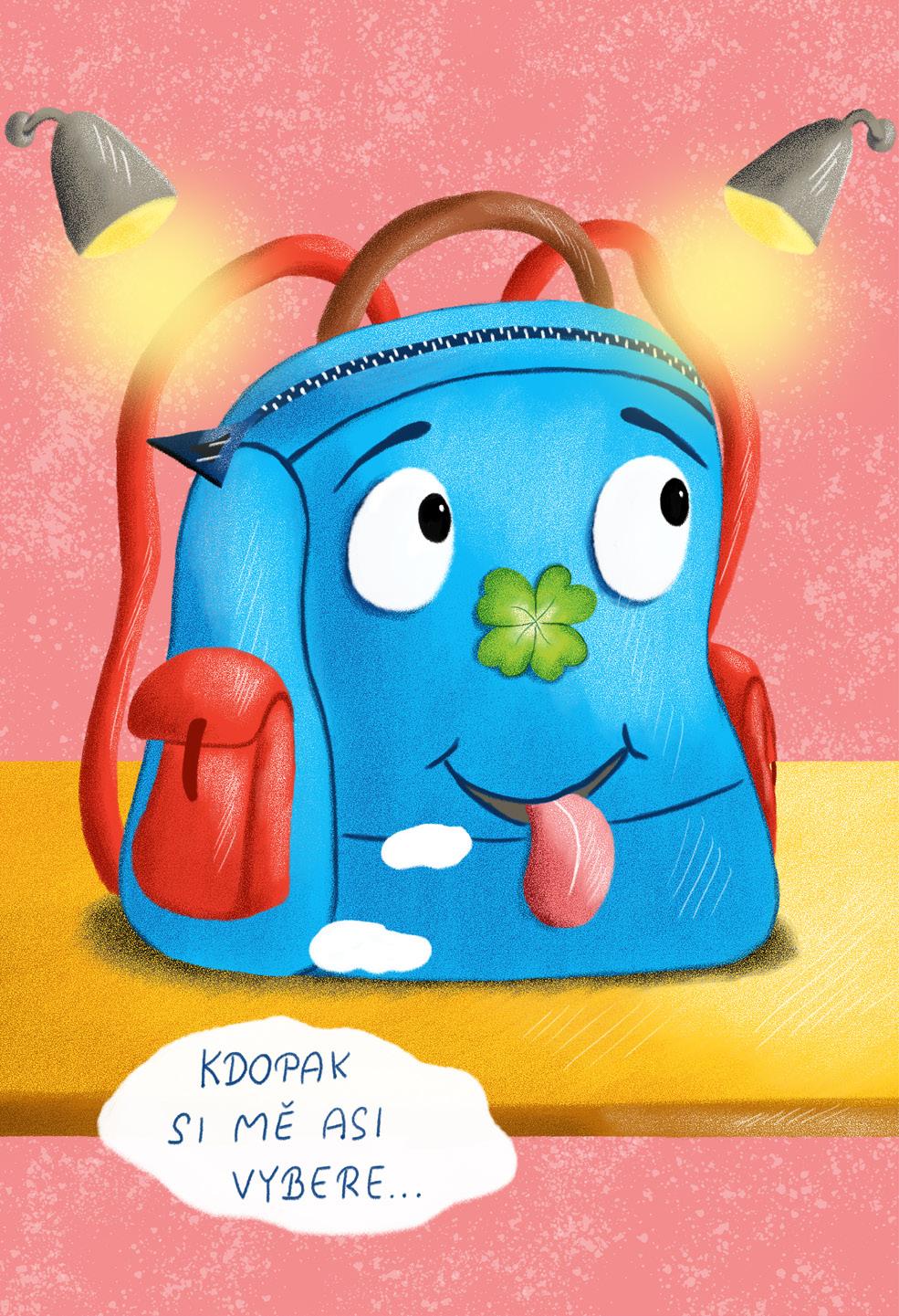 Kde se vzala, tu se vzala, ve velké továrně na školní potřeby se zrodila jedna neobyčejná aktovka. Byla modrá a mezi ostatními školními taškami ve výrobní hale doslova zářila. Měla dvě červené postranní kapsy, červené popruhy, velkou kapsu na zip a mezi očima nakreslený čtyřlístek.