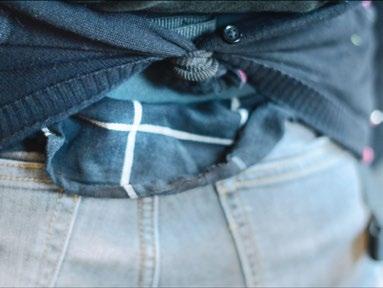 Nosíte-li děťátko na zádech a začne-li být najednou zima, nemusíte miminko hned odkládat. Oblékněte si jednoduše svetr či vestu obráceně a pak sepněte oba volné spodní konce vlasovou sponkou nebo gumičkou. A miminko i vy budete v teple!