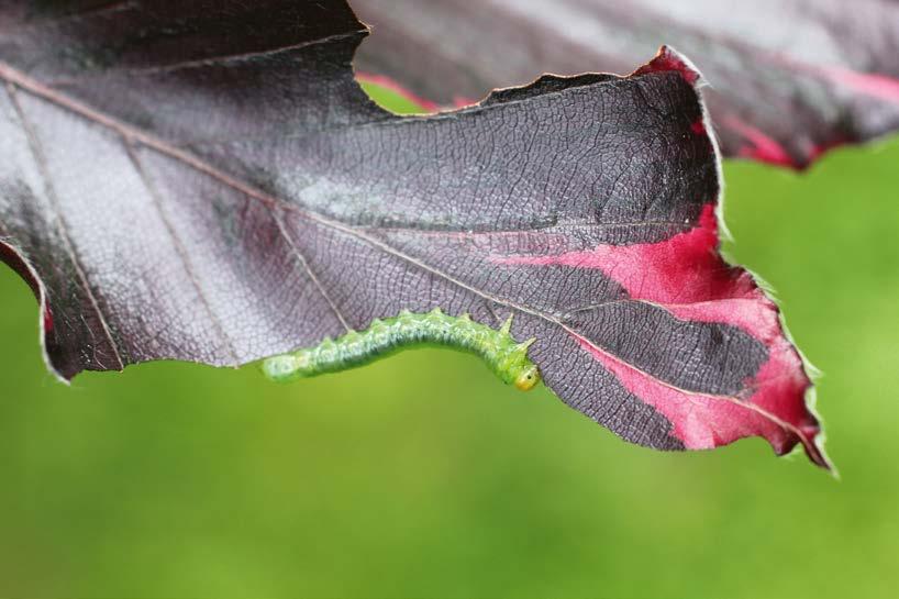 Mnoho housenek, které jsou lahodné pro ptáky, by se rádo stalo neviditelnými: jsou tak zelené jako listy, snaží se po celý den neprozradit špatným pohybem a doufají, že když zůstanou v klidu, nebudou sežrány. Toto maskování je však v pestrobarevném remízku zbytečné. Hodně okrasných keřů