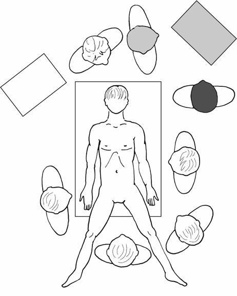 IOG je v závislosti na lokalizaci patologie prováděna vleže na zádech (kombinace s abdominální chirurgií; obr. 2.1) nebo levém boku (preferenční přístup při patologii jícnu cestou pravostranné torakotomie či torakoskopie). Endoskop lze zavádět pod videoskopickou kontrolou či po prstu, v atypických polohách je lepší zavádět s asistencí sestry. Nutná je spolupráce s anesteziologem, jednak z důvodu prevence komplikací orotracheální intubace ve smyslu dislokace kanyly, jednak pro možnou překážku danou stupněm nafouknutí balonku endotracheální kanyly.