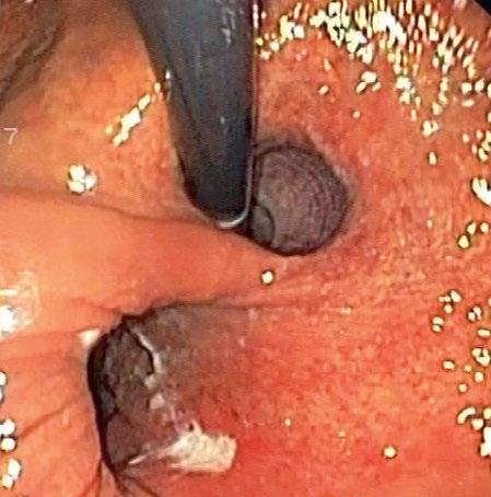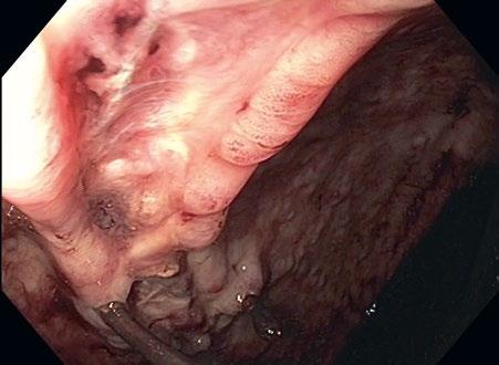 Hlavní indikace IOG u refluxní nemoci jícnu (GERD) zahrnují prokázané či suspektní lokální komorbidity, jako je krátký jícen [1–3], intramurální tumory či divertikly jícnu [4], v případě výrazného jizvení může přinést jistý benefit pro orientaci u upside-down stomach (obr. 2.8). Indikace u revizních výkonů po fundoplikaci zahrnují zejména suspektní perforaci man-