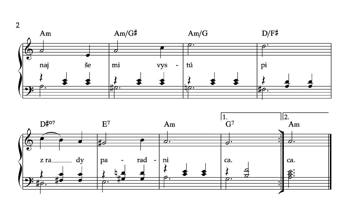 Aby sa práve tieto jednoduché, a predsa také ľúbezné piesne nestratili z nášho života, zostavili sme výber tých najmilších a najznámejších, tentoraz zo Slovenska. Upravili sme ich do ľahkého klavírneho sprievodu spolu s gitarovými akordovými značkami.