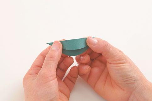 Okraje okvětních lístků ohneme směrem dovnitř. Na okraj lístku umístíme jehlici.