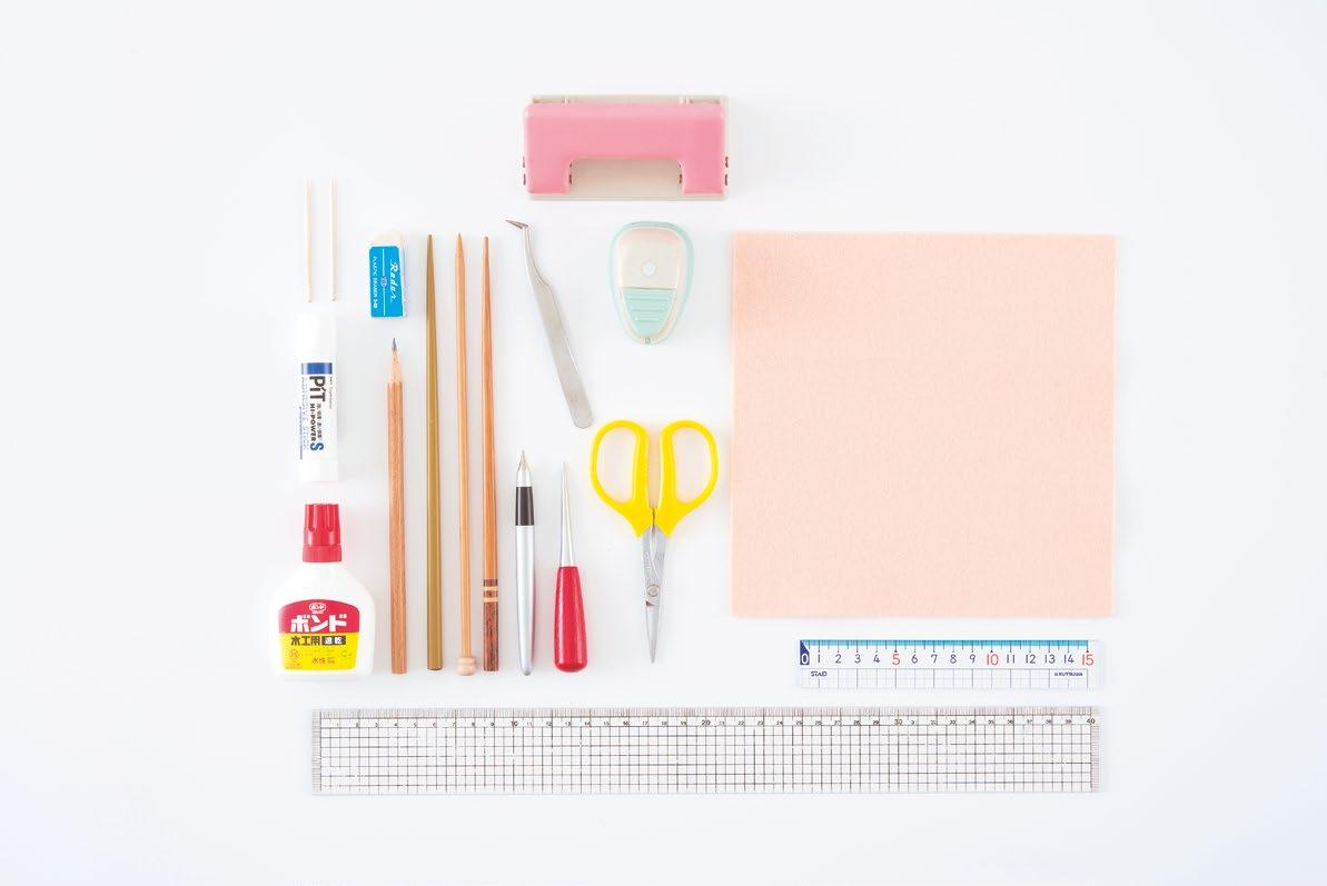 ❻ ostré nástroje pro vytváření značek na papíře, různé druhy pletacích jehlic, silná dřevěná jehlice na ohýbání papíru, tužka
