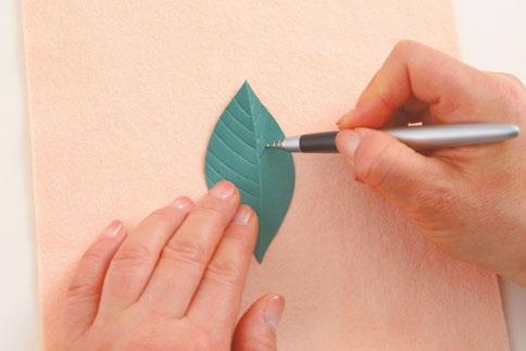 Lístek opět položíme na plstěnou podložku, rozložíme a naznačíme postranní žilky.