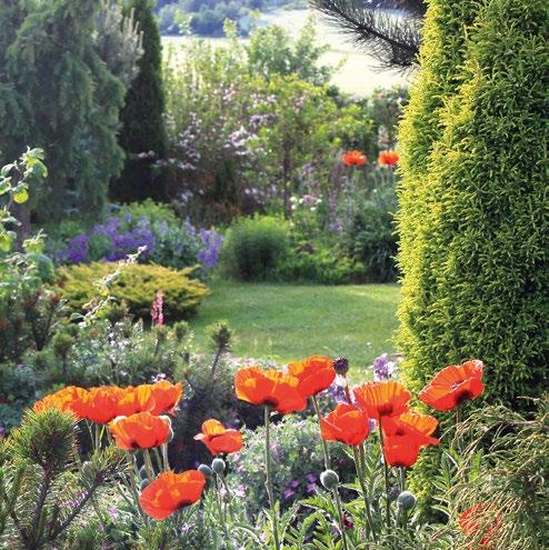 s Obrovské červené máky fungují jako kotva. Připoutají zrak i mysl do zahrady, která je v červnu mimořádně okouzlující…