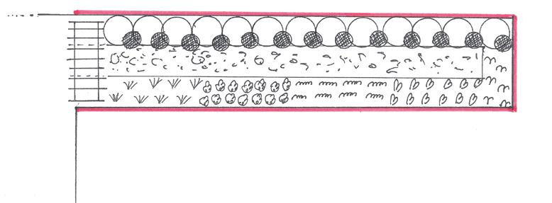 Ostrou špici pozemku (A) můžeme využít pro bylinkový záhon. Místo lze oddělit např. zdí z kamene, která může pokračovat i při hranicích „bylinkárny“ jako ochrana před zvídavými