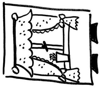 Všichni herci jsou mimo scénu v zákulisí. Na scénu přichází vypravěč, po uvedení pohádky zase odchází.