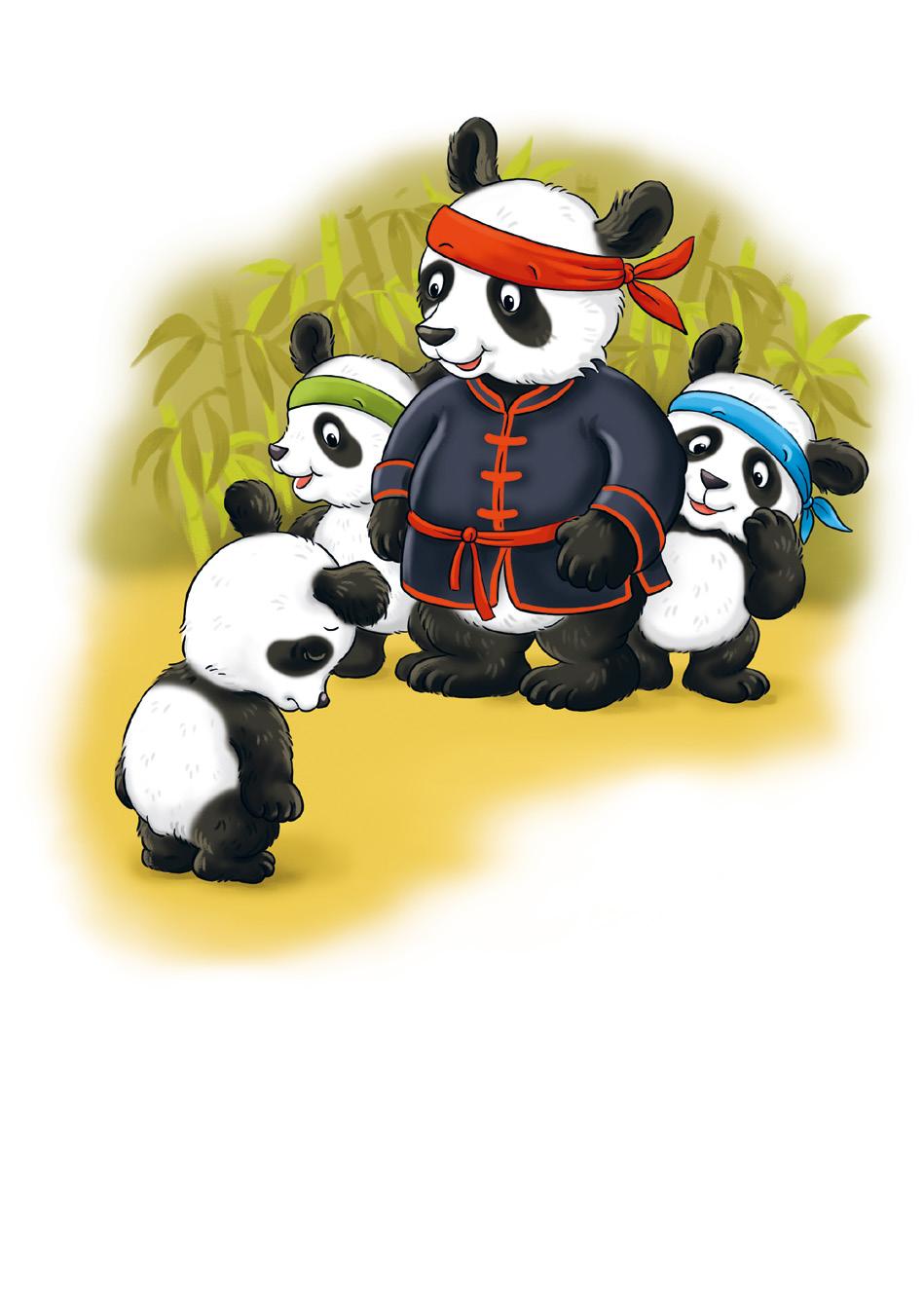 V neděli se vydala celá pandí rodinka na kratší výlet. Jak se tak pomalinku batolí bambusovým lesem, zahlédne maminka velkou ceduli s tímto nápisem: „Přijímáme malé pandy do bojové školy kung-fu. Hlaste se u Mistra bojovníka Tao Li.“