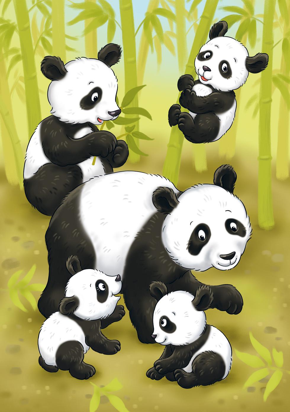 V daleké Číně, v jednom hustém bambusovém lese, žije velká pandí rodina. Vypráví se, že takové pandy celý den sedí a okusují bambusové výhonky.