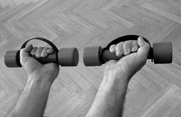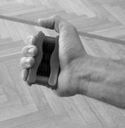 Dále můžeme jmenovat posilovač svalů předloktí . I toto náčiní můžeme vidět v mnoha provedeních. Od gumového kroužku až po pružinu s úchyty na koncích. Princip cvičení je jednoduchý – v dlani opakovaně mačkáme gumové kolečko nebo jiný tvar a tím posilujeme svaly nejen na předloktí, ale i na prstech a dlani.