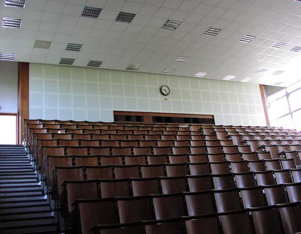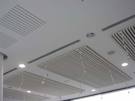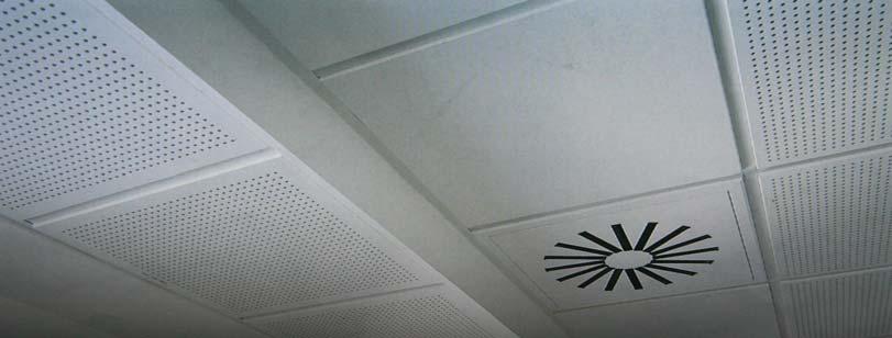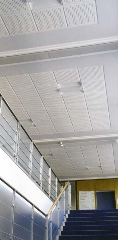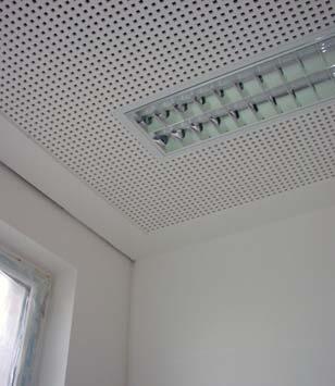 Obr. 4.19 Kombinace hladkých a děrovaných sádrokartonových kazet; hladké odráží zvuk, děrované ho naopak pohlcují