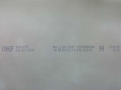 Vysvětlení: Deska podle DIN 18180, typ GKB (resp. A13 dle EN 520), délka 2000 mm, hrana HRAK, Třída hořlavosti dle DIN A2 (dle ČSN A, dle ČSN EN 13 501–1 – Třída A2)