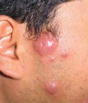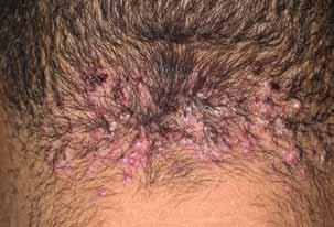 ně velmi závažnou akné nejen na obličeji a hrudníku, ale i na pažích a předloktích, u černochů vzniká acne keloidalis nuchae na šíji (obr. 1.14). Léčba akné je obtížná, nejlepší výsledky se pozorují při celkovém podání izotretinoinu.