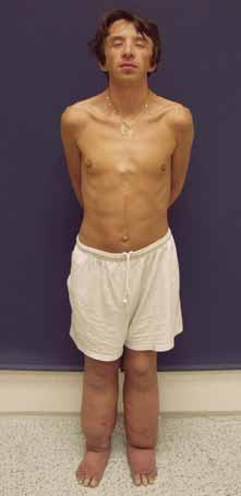 Obr. 1.8 Marfanův syndrom, patrný současně lymfedém pravé dolní končetiny (sestra pacienta z obr. 1.7)