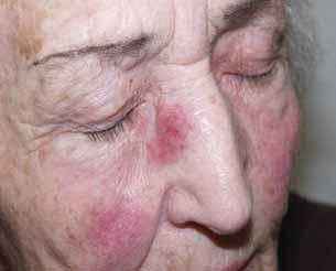 tou tkáň, takže staré jizvy mohou zčervenat a ztuhnout při infiltraci granulomy jak v akutní fázi, tak v chronické fázi nemoci (obr. 1.18). Sarkoidóza v jizvě může být jedinou kožní známkou systémového postižení!