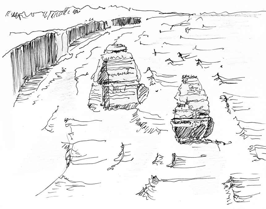 Ale přitom, jak všichni dobře víme, byla tato pevnina již od pradávna domovem těm, co tu byli ab origine, čili od počátku. Aboridžinci nejen ve svých fascinujících skalních malbách v barvách hlíny, nebe i exoticky pestrých okvětních plátků vždy dokázali žít v souladu s drsnou vyprahlou krajinou a věrně vzhlížet ke svým bohům. Znavené slunce každý den uléhá za Uluru, rudé a posvátné skalnaté srdce této magické jižní pevniny. Dnes byl dobrý lov, i oni mohou klidně spát. Přistání lodi Endeavour kapitána Jamese Cooka v Botany Bay je ještě daleko před nimi, stejně jako galaxie nenasytných ovčích stád, křesťanské misie, zlatá horečka, eskadry britských trestanců, infekční nemoci i záplava zdivočelých králíků. Hektická nová epocha ještě nevzala za kliku tohoto nejmenšího, nejploššího, nejsuššího a Evropany nejpozději objeveného ze všech světadílů. Klokaní maso dodá statečným bojovníkům sílu k dalšímu putování za novými lovišti. Začneme ve Velkém australském zálivu, na pobřeží Indického oceánu. Držme se satelitní navigace GPS i starých námořních map a hvězdných plánů. Dojděme si nejprve spolu pro požehnání ke Dvanácti apoštolům!