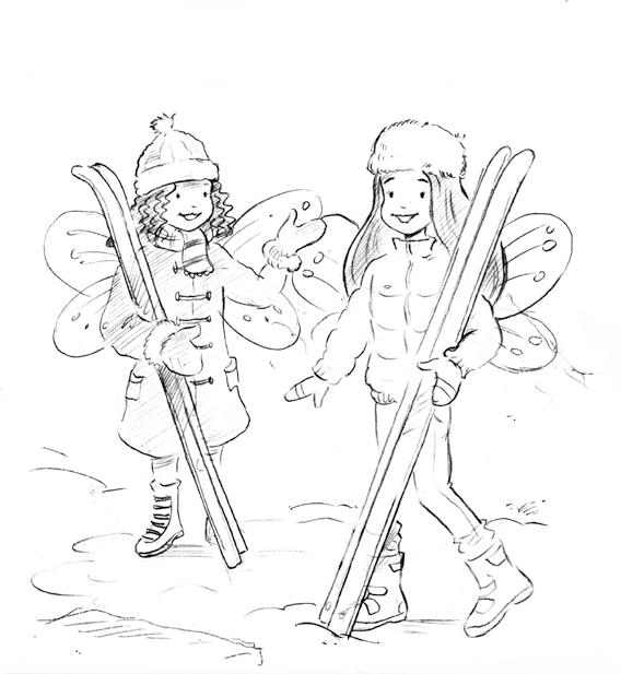 Letnička pozvedla lyže, které držela v r uce. „Jdeme se vydovádět na Kouzelný kopec. Půjdeš s námi?“