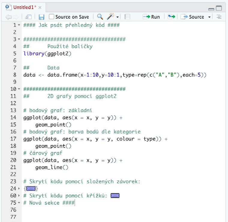 Poznamenejme, že čtenář by měl věnovat zvláštní pozornost vysvětlení rozdílů mezi širokým a dlouhým formátem dat v sekci 1.7.3. U většiny typů grafů se totiž syntaxe kódu pro jejich vytvoření i samotný grafický výstup liší podle formátu zpracovávaných dat.