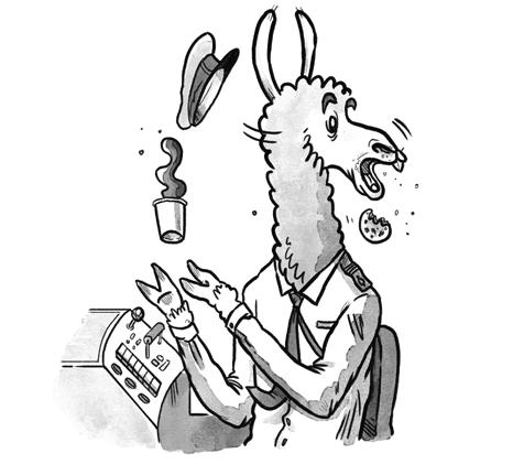 „Mmm. Mmm. Mmm.“ Strojvůdce mekl. Všechny lamy mečí, když jsou nervózní nebo ve stresu, a pro tuhle lamu platilo oboje. „Tohle není dobré.“