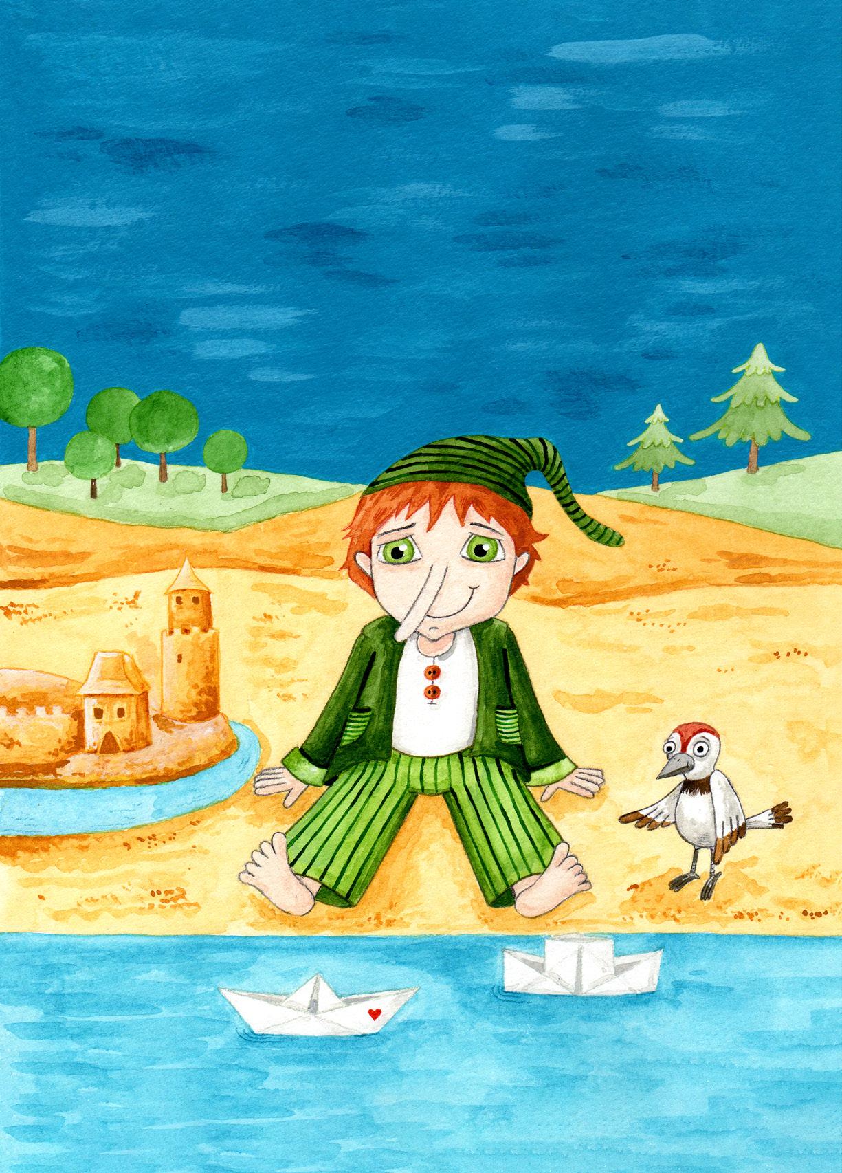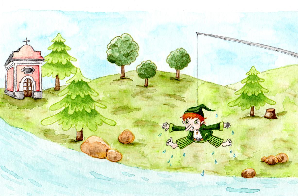 „Já to věděl, synku, že je na tebe spolehnutí!“ oddechl si starý vodní skřítek. „Teď můžu v klidu odpočívat, chytat lelky nebo jen tak okounět.“ A se žblunknutím skočil do vody. Pak se ještě vynořil a dodal: „Kdybys něco potřeboval, stačí mi po vodě poslat vzkaz!“