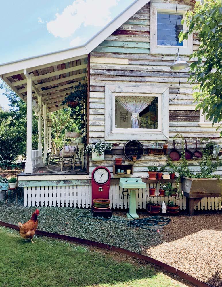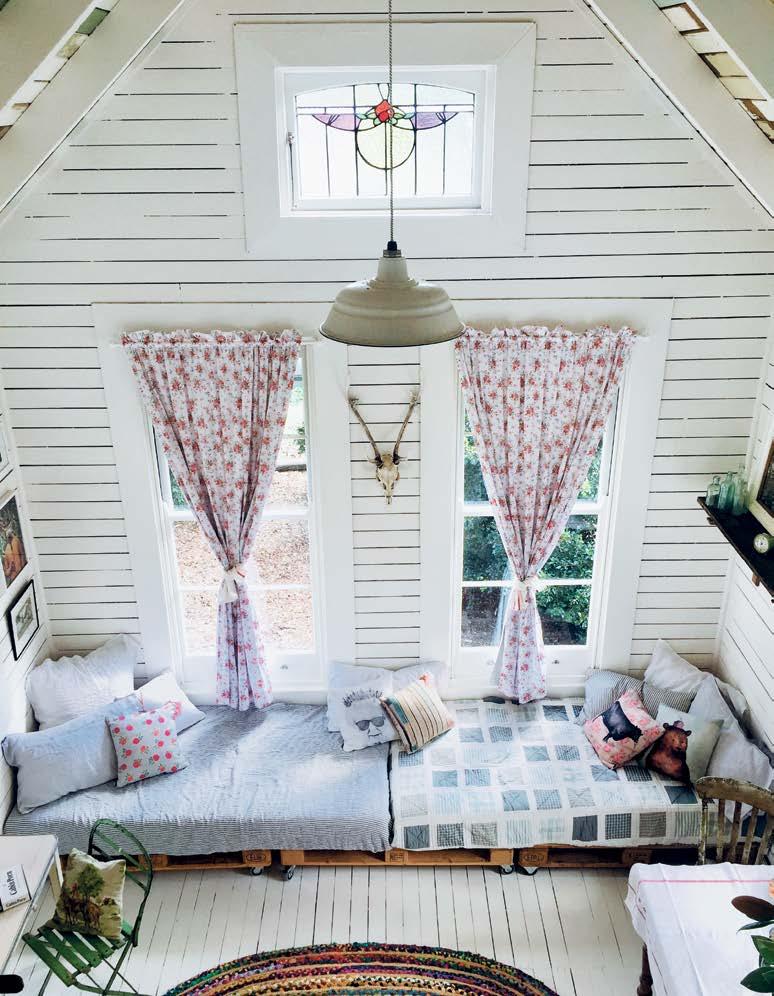 nejlepším úlovkům patří prkna na verandu ze sto let staré chalupy v pohoří Glass House, dvoukřídlé dveře ze státní školy v Nundahu a starožitná prkna, z nichž si složila kuchyňskou lavici. Postupem času vybudovala paní Kelly ještě jedno stavení – jakousi dílnu či kreativní prostor přezdívaný „Kaple“ – a její chata na míru se stala nejen oblíbeným cílem rodinných výletů, ale i lákadlem pro objektivy fotografů a filmařů.