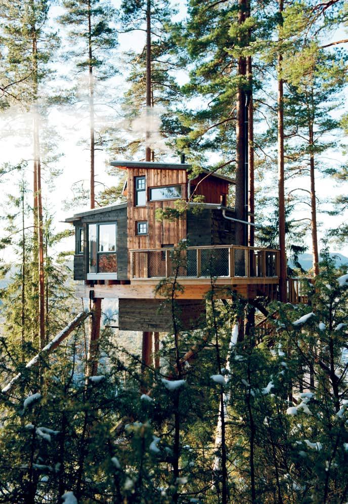Chata nazvaná Kukaččí hnízdo našla inspiraci v typicky dětském snu – postavit si stromovou chýši. Jens a Åse Trydalovi vybudovali toto dvoupokojové stavení, které se vznáší šest metrů nad zemí v korunách stromů na jihu Norska, s pomocí místního tesaře v roce 2016 celkem za čtyři měsíce. Hnízdo je postaveno z místního dřeva, elektřinu mu zajišťují solární panely a má i kompletní kuchyni s teplou vodou, chladničkou a sporákem.