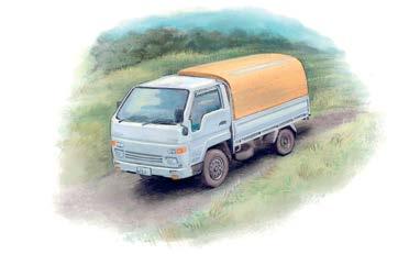 osmačtyřicet velikánů, které během dvou dnů pokáceli a pomocí traktoru dotáhli na louku, kde dřevo nechali dozrát a přiřízli ho na potřebnou délku. (Délka chaty odpovídá nejkratší kládě.)