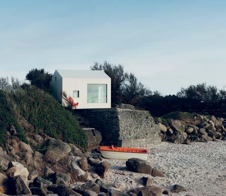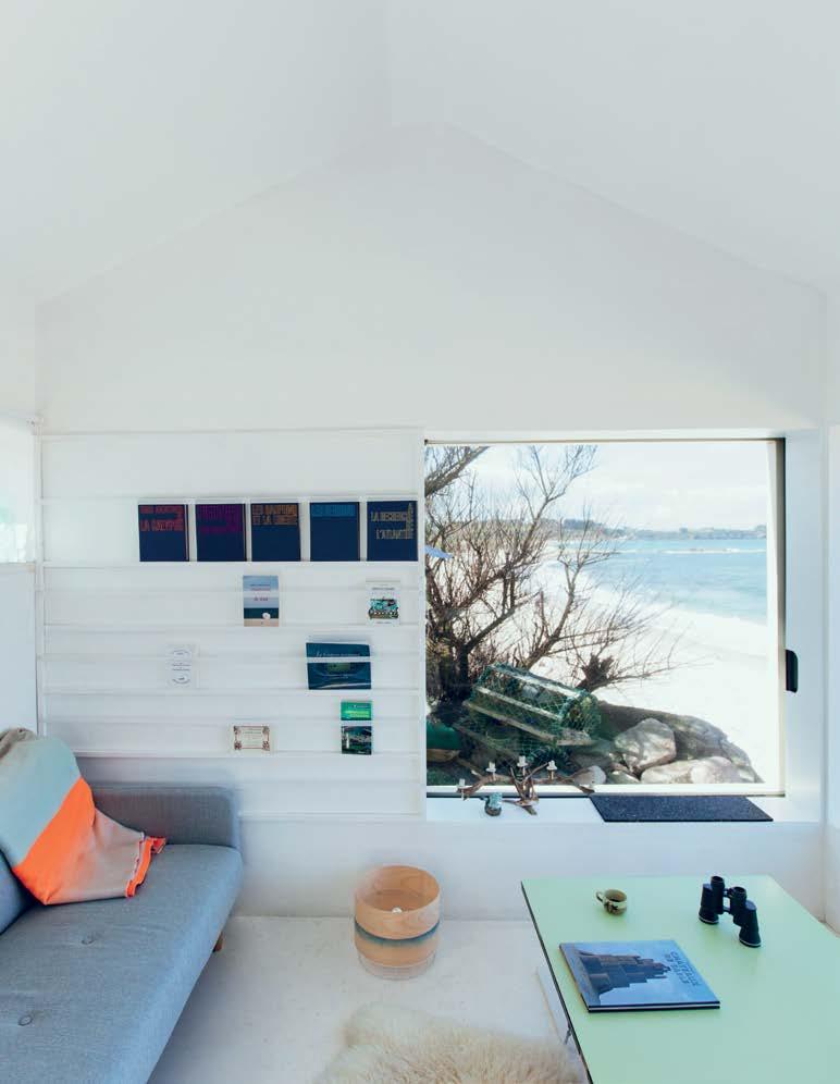 Tato modernizovaná rybářská chatka z betonu, která stojí na skále u moře na francouzském poloostrově Cotentin, původně vyrostla v padesátých letech minulého století. Její rozměry přesně odpovídají waldenskému srubu Henryho Davida Thoreaua – tři metry na čtyři a půl metru – a v důsledku přísných stavebních předpisů, jež se ve Francii vztahují na pobřežní architekturu, nebylo při renovaci možné velikost ani tvar budovy změnit. Pařížské studio FREAKS tedy udělalo maximum možného: pokrylo chatku izolačním pláštěm z galvanizovaného kovu v barvě champagne a přidalo dvě velká posuvná okna s výhledem na obzor. V mezaninu je umístěno dvoulůžko, z velké otevřené terasy se nabízí výhled na krajinu s růžovými žulovými skalami a v obýváku může na skládacích křesílkách od islandského architekta Valdimara Hadarsona u stolu posedět až osm lidí.