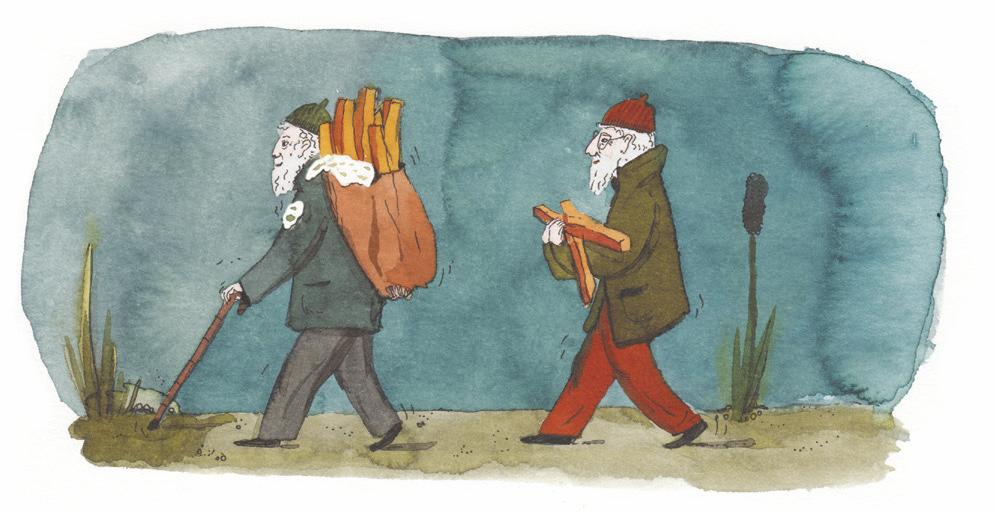 „To je přece strašná škoda,“ namítl Rudolf. „Tak to vezmeme s sebou a necháš si je zkazit. Já ti s tím pomůžu,“ starší trpaslík nečekal na odpověď a naložil pytlík na záda, trochu tatarky mu přitom vyteklo na kabát.