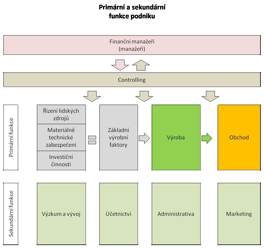 1.3.6 Návaznost controllingu na primární funkce podniku Primárními funkcemi podniku rozumíme funkce, které jsou pro podnik důležité z hlediska naplnění jeho poslání. Rozlišujeme tři základní funkce (Synek a kol., 2010): – výrobní, – prodejní/marketingová, – zásobovací.