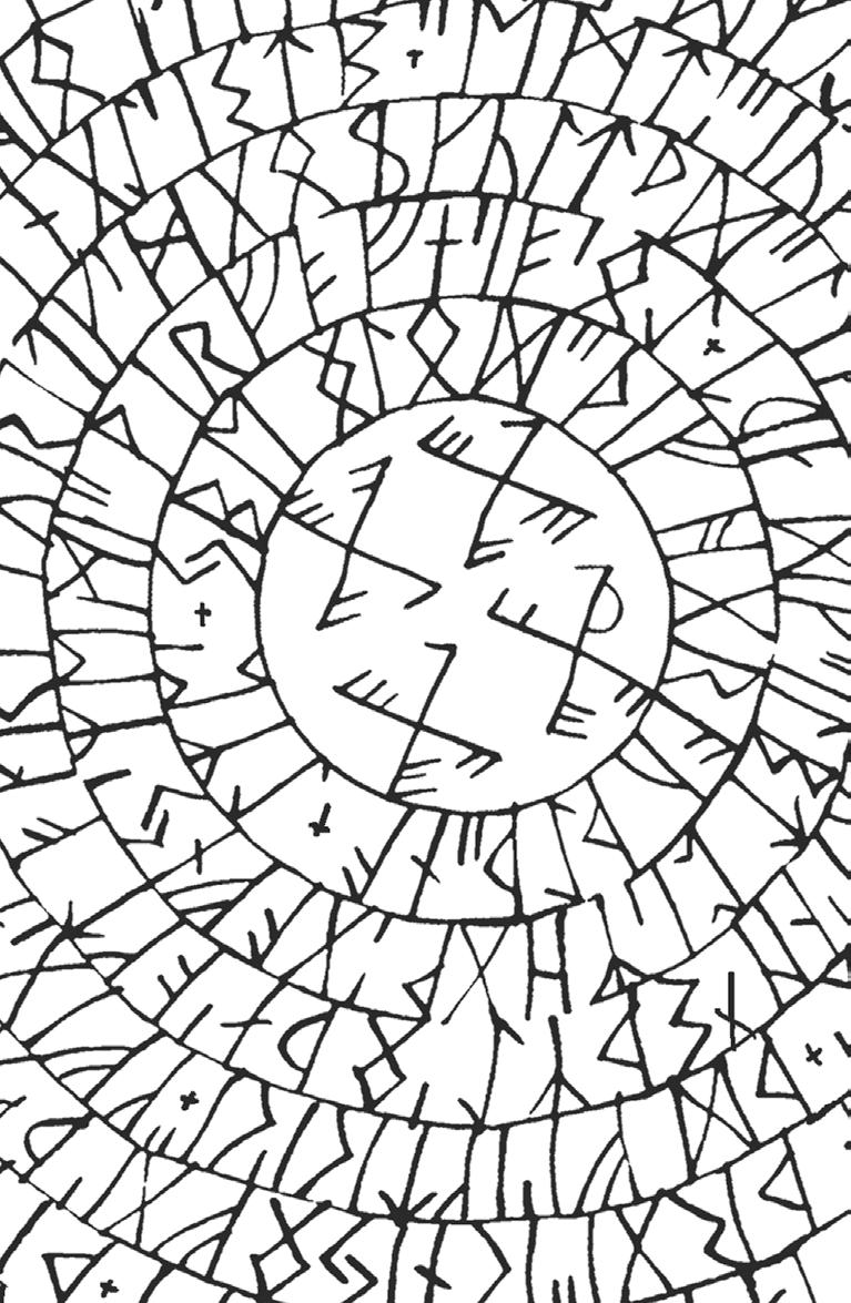 Seveřani neznáte nic jiného než jen zvuk vlastních hlasů? Poslouchejte, přišel z naší hory a vypráví příběh spojený s naší vsí. Měli bychom zjistit víc.“ Opět promluvil na mnicha a začal znovu překládat. „Říká, že vážil dlouhou, nebezpečnou cestu do Kilsgardu, aby našel poklad nepopsatelné hodnoty. Se společníkem, anglickým válečníkem jménem Wiglaf z Bamburghu, sledovali stopy vyryté na záhadném kostěném pouzdru, které našli na svých cestách.“